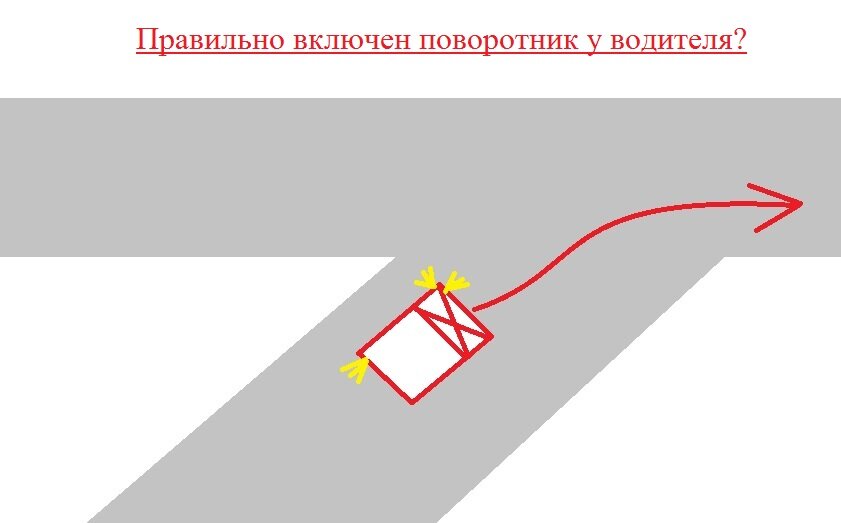 К нам в юридическую контору обратился водитель, который пояснил что выезжая с второстепенной дороги на главную, причем второстепенная дорога примыкала к главной под углом в 45 градусов, поворачивая направо включил левый указатель выехал на главную и был остановлен инспектором ДПС который двигался позади него. Ему был выписан штраф за то что он включил не тот указатель поворота, несмотря на то что штраф маленький 500 рублей он хотел его обжаловать.
