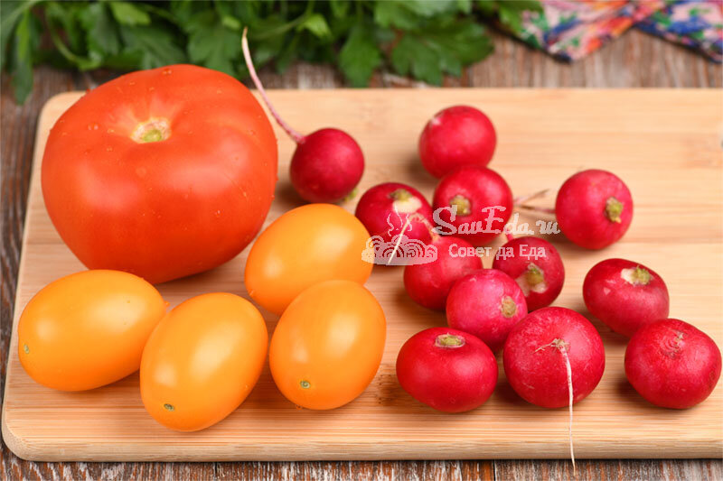 Из помидоров и редиса готовлю слоеный вкусный салат (подаю его и на праздничный стол)