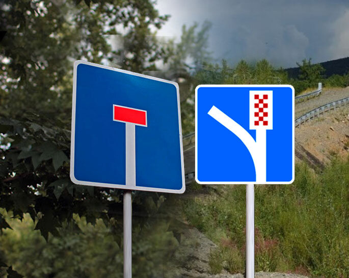 Шофера даже с большим стажем вождения могут легко перепутать два знака 6.5 и 6.8.1 - они оба синие, квадратные, да и в целом внешне похожи, согласитесь? Однако значения этих двух дорожных знаков серьезно отличаются друг от друга. Знак 6.8.1 большинство автолюбителей наверняка встречали на дорогах - это тупик. Он относится к категории информационных и даёт понять водителю, что дорога впереди не имеет сквозного проезда. При этом проезжать в сторону тупика не запрещено. С тупиком мы разобрались, далее перейдем к другому знаку - 6.5, который уж очень сильно напоминает тот самый тупик внешне - такой же квадратной формы и цвета, но вместо красного прямоугольника у него красные "шашечки". Есть водители, которые давно за рулём, но на дорогах ни разу такой знак не встречали, при этом считая, что 6.8.1 и 6.5 - одинаковые по значению и смыслу знаки, однако это не так. Знак 6.5 тоже информационный и в ПДД называется не иначе, как "полоса аварийной остановки". На дорогах в центре города его вы вряд