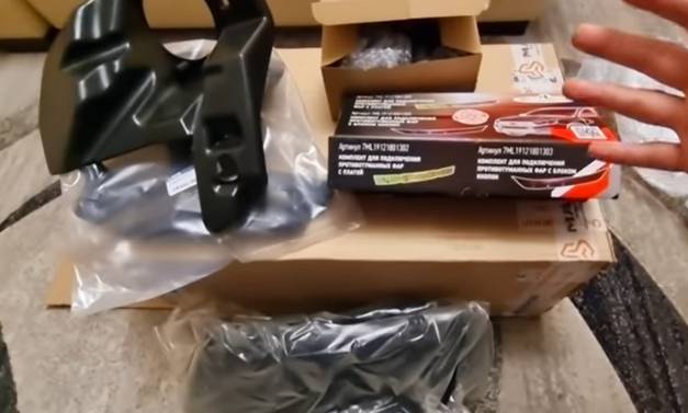 Приехала посылка тюнинга на мою Ладу Весту. В коробке много элементов тюнинга, но все они направлены для того, чтобы поставить противотуманные фары. В моей комплектации Классик Старт и даже в Комфорте противотуманных фар нет. По опыту Гранты я знаю, что противотуманки нужны. У Весты свет лучше, чем на Гранте, но с противотуманными фарами все будет гораздо интереснее. Я покажу вам комплект, чтобы не «колхозить», а правильно поставить на любую Весту противотуманные фары. И покажу, какие из них лучше, чтобы были похожи на заводские, чтобы никто не отличил, что вы колхозили, как будто просто купили такую готовую Весту. Покажу, что входит в данный комплект, как все это выглядит, и почему я его заказал. Начнем с кронштейна ПТФ. Без него вы не сможете прикрепить фару на бампер. В простой комплектации Лады Весты их нет. В комплект входят правый и левый кронштейны. Есть оригинальные, а есть неоригинальные. Они отличаются по цене на 100-200 рублей. Не оригинал выполнен чуть хуже. Но я взял ориги