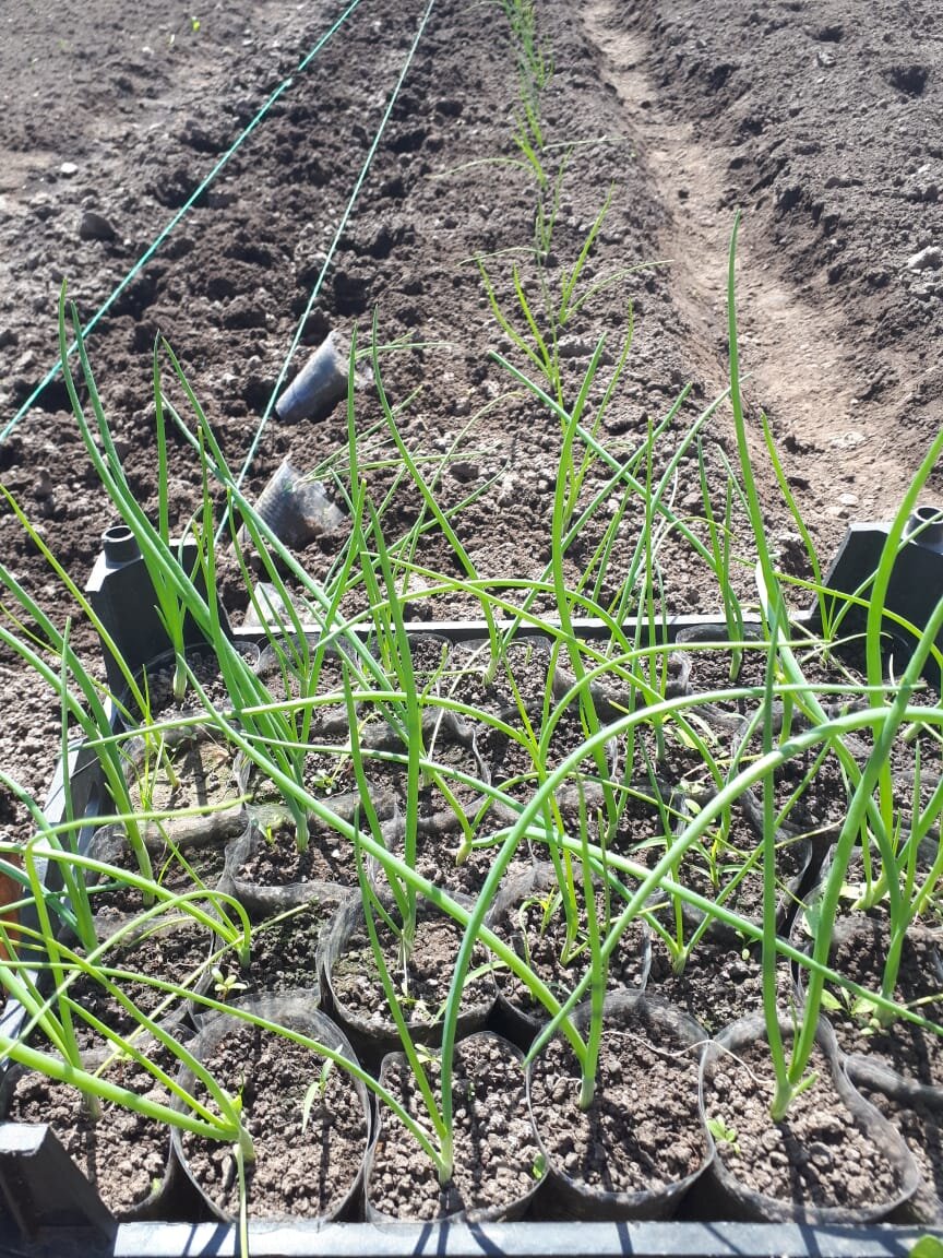 Добрый день, дорогие садоводы и огородники! На следующей неделе планирую высадить рассаду лука эксибишен на грядки и сейчас подробно расскажу, как я это делаю. Часть рассады я выращиваю с пикировкой, а часть без неё. Конечно удобно, когда лук распикирован по 200 г стаканчиками, корневая система закрыта и лук очень быстро приживается на новом месте Грядки перекапываю на глубину штыковой лопаты, ровняю граблями. У меня получаются грядки 80-90 см в ширину и 10 м в длину. Размер грядки может быть любой, как вам удобно. Лук высаживаю в три ряда, расстояние между рядами 25 см. С помощью шпагата размечаю грядку и приступаю к высадке рассады. Совочком делаю лунки на расстоянии 15 см. Глубина лунок зависит от длины корневой системы. У рассады, которая росла в общем контейнере, корни я подрезаю, потому что загибать корни не желательно. Конечно можно высаживать рассаду в траншею, но мне удобнее в лунки. При высадке рассаду лука эксибишен заглублять не нужно. Рассаду высаживаю на тот же уро