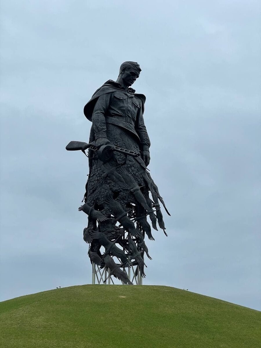 Был в Ржеве, видел мемориал Советскому солдату. Как это ни странно, мемориал очень обнадеживающий. В эстетическом смысле — наконец-то сделали красивый осмысленный памятник. Советский, но легко узнаваемый поэтический образ — погибшие солдаты превращаются в журавлей. Сам солдат объединяет в себе черты памятников авторства Вучетича — Воину освободителю и Головницкого — От тыла фронту. То есть там видно, что мастерство скульптора не утеряно навсегда, не выродилось, и не стало совриском. Классический понятный, интересный памятник. Это большая редкость. Но поражает другое. К памятнику ведет аллея огражденная изломанными гранитными глыбами, которые покрыты ржавой сталью. И эта ржавая сталь изрезана фамилиями русских людей, погибших в битве под Ржевом. По алфавиту, с инициалами. Поворачиваешь голову — буква “М”. Макаров А.А, Макаров А.А, Макаров А.Б, и так далее. Буква “Н” — Николаевые, Никулины, Новиковы. Тысячи людей на каждую букву. Наверное вообще нет ни одной фамилии, носитель которой не