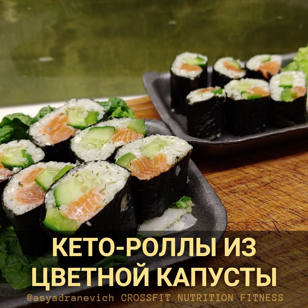 Можно на ужин или даже на самой строгой диете: в этих диетических роллах нет ни грамма риса, только рыба и овощи. Ингредиенты: В общем-то, начинка может быть любая: в дело идут авокадо, грибы, икра (ну, или ее имитация из морских водорослей), сыр или японский омлет. кБЖУ: Указанное количество: 223/25/6/15 Приготовление: Отварите цветную капусту, после чего дайте ей слегка просохнуть и остыть. Поместите соцветия в чашу блендера. У меня было настроение добавить еще немного сливочного сыра и петрушки. Измельчаем все до состояния мелкого зерна. Подготовьте начинку, нарезав рыбу и овощи длинными полосами. Подготовьте рабочую поверхность: это может быть застеленная полиэтиленовой пленкой бамбуковая салфетка или даже просто плотный пакет, как в моем случае. Уложите на нее лист нори и слегка смочите его влажными руками. Ключевое слово - слегка. Аккуратно распределяем "рис" из цветной капусты примерно до трети листа. Сверху выкладываем рыбу и овощи. Плотно сворачиваем ролл. Уже похоже :) Тепер