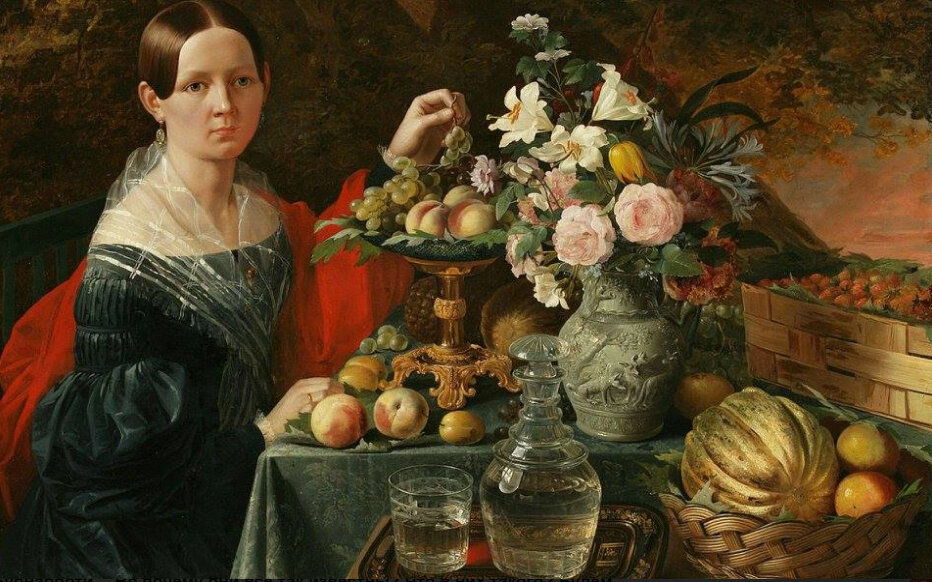 Уроженец современной Витебщины Иван Хруцкий получил среднее художественное образование в Полоцке, а в 1827-м переехал в Санкт-Петербург, чтобы учиться дальше. Двенадцать лет спустя художник навсегда вернулся на белорусскую землю, купив имение под Полоцком. Но «Портрет незнакомки с цветами и фруктами» был написан в России — работа датируется 1838 годом.