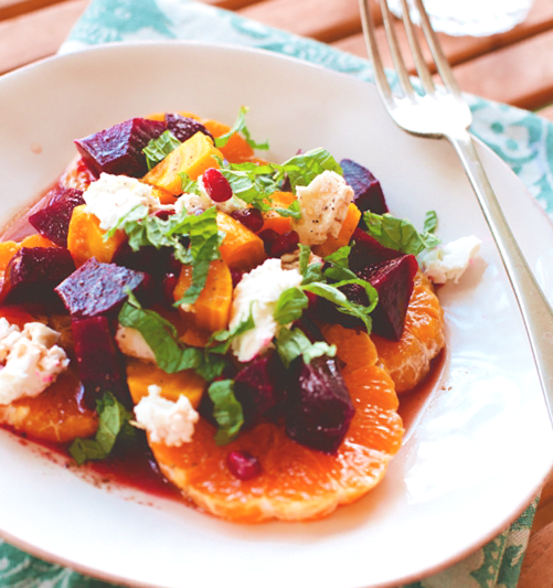 Праздничное меню: свекольный салат с малосольной брынзой и мандаринами