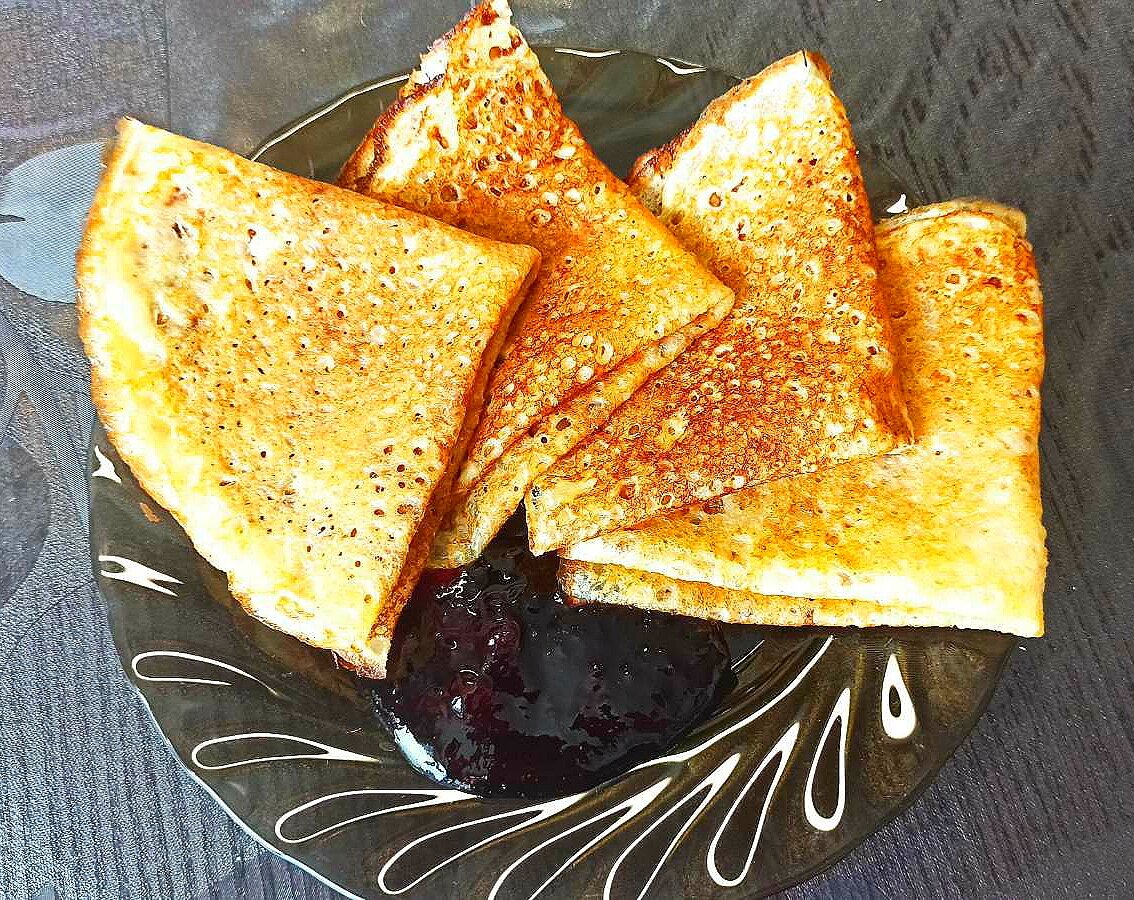 Все привыкли к традиционным блинам с мукой и сахаром, но ведь можно готовить и из других ингредиентов. Вот классный вариант: блинчики с картофельным крахмалом. Здесь не нужен сахар, так как сладость даст крахмал. Получаются вкусные блинчики, которые идеально подойдут тем, кто решил поменьше есть мучное. Рассказываю, как приготовить. Время приготовления 30 минут. Ингредиенты: Молоко — 0,5 л Яйца — 3 шт. Крахмал картофельный — 150 г Щепотка соли Масло растительное — 2 ст. ложка Процесс приготовления. В глубокую миску налейте пол-литра молока и разбейте три яйца, перемешайте. Добавьте соль. Крахмал добавляйте постепенно, перемешивая после каждой порции. В конце добавьте 1 ст. ложку масла и опять перемешайте блинную смесь. Поставьте сковороду на огонь, смажьте её растительным маслом. Когда сковорода прогреется, налейте свою обычную порцию теста и обжарьте блинчик с двух сторон до золотистого цвета. Перед каждым новым блинчиком тесто
