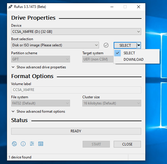 Давайте разберемся, как создать загрузочную флешку менее чем за 1 минуту? Rufus -- самая популярная программа среди приложений для создания загрузочных USB-носителей с системами на основе ISO-образов. В данной программе есть параметры форматирования и проверки носителя на наличие ошибок. Поэтому, если вы не уверены, что наша флешка или другая флешка, которую мы хотим использовать, полностью работоспособна, давайте воспользуемся Rufus'ом. Лучшая программа для создания загрузочных носителей, незаменима, когда мы хотим создать флешку или диск с операционной версией Live. Rufus имеет два специальных режима для создания носителей: скачивание образа и выбрать готовый образ диска. По умолчанию, мы всегда выбираем опцию готовый образ диска, только когда что-то не работает, мы можем попробовать опцию загружка образа. При работе с программой требуется подключение к интернету, так как при создании носителя необходимо загрузить файлы, необходимые для завершения правильной установки.