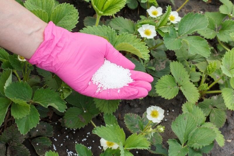 ? Сорта клубники, выращиваемые в открытом грунте, нуждаются в подкормках азотными удобрениями. Так как их листья, как и вся надземная часть растений, содержат азот, то клубника, находясь в период цветения в ярком свете, нуждается в поступлении фосфора и калия, которые способны не только насытить растения азотом и фосфором, но и растворить в почве все эти вещества, находящиеся в составе растений. В качестве удобрения, помогающего растению подготовиться к отдыху после цветения и набирания максимального количества урожаев, лучше всего использовать раствор нитрофоски (20 г на 10 л воды). Если в процессе созревания ягод у клубники происходит недостаток азота, то есть она недополучает фосфор и калий, нужно дать подкормку в виде раствора мочевины (10 г мочевины на 10 л воды). Также при недостатке фосфора удобрение требуется в виде настоя коровяка, разведенного водой 1:6 (5 л на 10 ведер воды). При нехватке калия можно использовать для внесения в почву томаты, огурцы, картофель, свеклу, мор