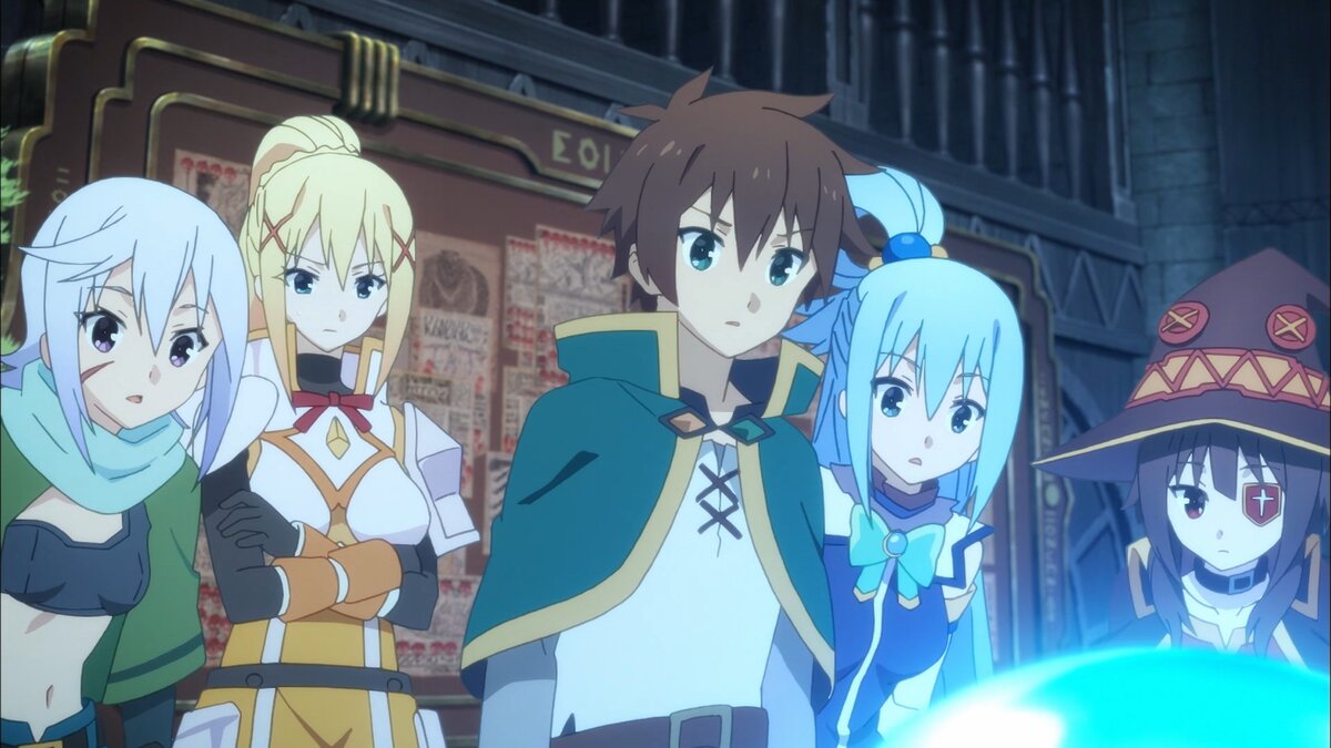 Обычный подросток Сато Кадзума увлекается онлайн-играми, а также аниме. Юноша всячески подражает героям манги, а потому он воспитал в себе храбрость и мужество. Школьник долго ждал тот день, когда должна выйти новая онлайн-игра. Утром подросток отправился в ближайший магазин, чтобы приобрести долгожданную игрушку, но у судьбы были совершенно другие планы на паренька. Случайно Кадзума увидел невнимательную девчонку, которая попыталась перейти дорогу на красный свет. Водитель грузовика не заметил бедолагу, и он мчался прямиком на девушку. Смелый Сато успел оттолкнуть пешехода, но при этом угодил под колёса огромному автомобилю. Смерть наступила моментально, но чудом Кадзума оказался в параллельном мире. Мальчишка не сразу понял, что с ним произошло, но через мгновение он увидел мистических обитателей неизвестного для него мира. Вскоре подросток познакомился с очаровательной жительницей городка, которую зовут Аква. Новоиспечённая подруга поведала парню обо всех опасностях в фэнтезийном мире, а также о тираническом правлении короля демонов. Повелитель тёмных сил решил завоевать все земли и подчинить себе народ, но храбрый юноша не позволит этому случиться.