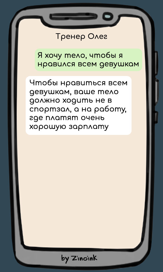 Привет, дорогой друг! Май — это не только месяц цветущих яблонь, парада победы и школьных звонков, но и время сожалений для тех, кто весь март и апрель планировал заняться спортом. Те, кто не только мечтал о красивой фигуре к пляжному сезону, но и уделял время тренировкам, уже во всю щеголяют в шортах, а те, кто откладывал занятия, просят мать-природу о холодном лете. Самые оптимистично настроенные персонажи пытаются нагнать упущенное время и привести себя в форму за 2-3 дня, терзая фитнес-инструкторов невыполнимыми и от этого забавными просьбами. Предлагаю тебе самому взглянуть на парочку таких примеров. Хоть следующие #смс переписки и выдуманы мной специально для этой статьи, они недалеко ушли от правды. Поскольку многие люди зациклены на попытках сбросить лишние килограммы, а #похудение и правильное питание — это буквально цель жизни, то им сложно увидеть другие решения проблемы. Если отражение в зеркале не кажется привлекательным, можно не истязать себя в спортзале, а поискать иные