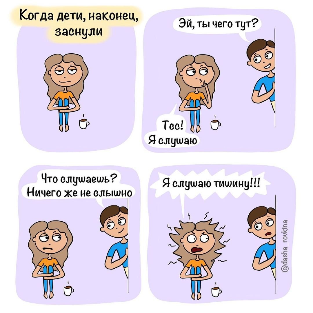 Родительсво, как непрерывный источник для юмора и комиксов, может вдохновлять только таких позитивных людей как Даша - комиксистка из Череповца, о творчестве которой сегодняшняя статья. Комиксы Даши искренние и забавные, они быстро находят отклик у читателей и набирают все большую популярность. Мы пообщались с Дашей в ее блоге Инстаграмм dasha_rovkina, где она публикует свои веселые комиксы о материнстве и семейной жизни. Там же у нее можно заказать комикс или иллюстрацию на свой вкус. Даша оказалась, милой и приветливой собеседницей и рассказала немного о себе, для читателей Дзена. Здравствуйте, Даша) Расскажите пожалуйста немного о себе. "Я живу в городе Череповец. По образованию инженер-строитель. В детстве любила рисовать, хотела пойти в художественную школу, но родители спортсмены отдали меня в спортивную школу. В итоге я КМС по лыжным гонкам и полиатлону. " Даша, как вы пришли к рисованию комиксов? "В первом декрете появилось время для творчества и я пекла имбирные пряники
