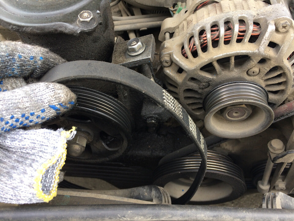 При этом болт натяжителя нужно выкрутить сантиметров на 5 (практически до конца) иначе старый ремень вы конечно снимите,а вот новый поставить не получается.Он окажется гораздо короче.Причина тому естественная выработка и растяжение.