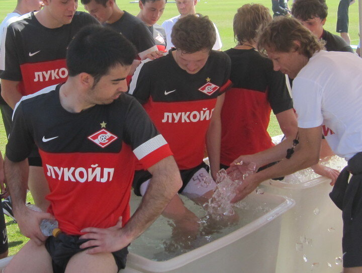 Все мы понимаем, что восстановление такая же важная часть футбольной карьеры, как и сами тренировки. Одним из популярных сегодня способов восстановления являются ледяные ванны. Хоть это, наверное, не самый комфортный способ для расслабления, однако судя по его популярности, думается, что очень эффективный. Для многих ледяная ванна после интенсивной тренировки или длительной пробежки просто творит чудеса. Отметим, что это может быть не только футбол, а по сути, любые активные физические нагрузки. Бегуны и легкоатлеты используют этот способ на регулярной основе. Если брать футболиста, то во время матча он совершает большое количество спринтерских забегов, от чего мышцы получают множество микротравм. Микроразрывы мышечных волокон являются для футболистов обычным делом и чего-то такого страшного тут нет. Такие микроразрывы почувствовать по отдельности весьма сложно, а вот общая мышечная боль после интенсивной тренировки чувствуется очень даже хорошо. Чем же так хороши ледяные ванны? В