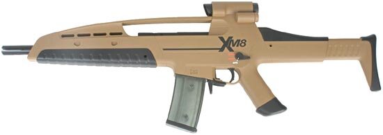 В 2002 году американская компания Alliant Techsystems (ATK) получила контракт на проработку возможности создания более легкой и надежной штурмовой винтовки, чем винтовка М16 и карабин M4. Разработка нового оружия, под руководством ATK, была проведена американским филиалом компании Heckler-Koch (г. Стирлинг, штат Вирджиния, США). В результате была создана модульная система XM8 Lightweight Modular Carbine System калибра 5.56x45 мм NATO, по сути, являющаяся модификацией немецкой штурмовой винтовкой HK G36. Новая винтовка в сочетании с разрабатываемыми 5.56-мм патронами с легкой композитной металлопластиковой гильзой была призвана, по сравнению с М16, обеспечить экономию массы оружия на 20%. В 2004 году XM8 успешно прошла обширные испытания в ряде подразделений ВС США и была признана перспективной винтовкой, заслужив положительные отзывы. Запуск новой винтовки в массовое производство планировалось осуществить в 2006 году, однако по ряду причин осенью 2005 года программа XM8 была закрыта, и