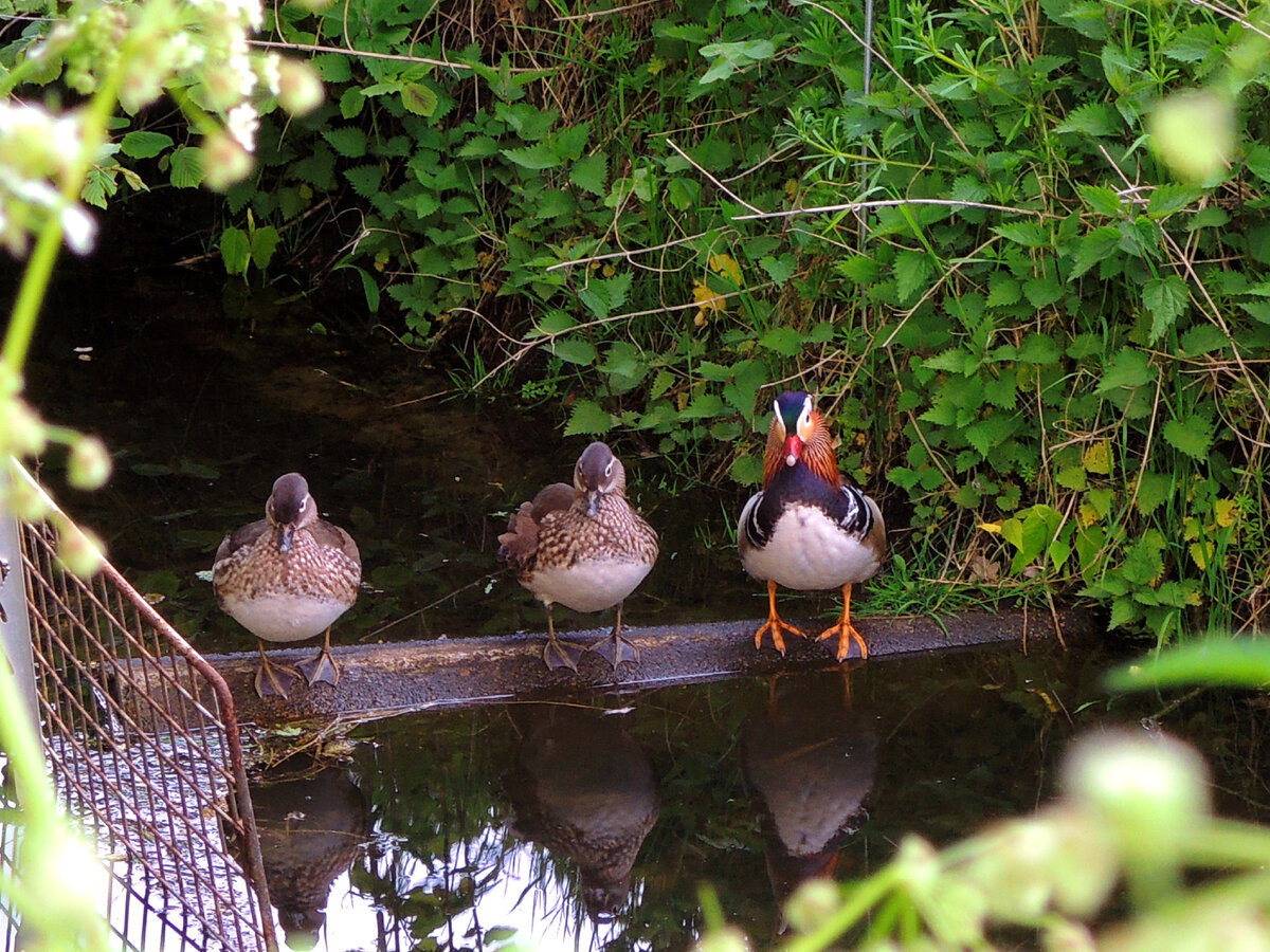 Вот чего не ожидала я встретить в Голландии, так это утку-мандаринку. Думала, они обитают где-то в тропиках, во всяком случае далеко от Голландии. И вот пожалуйста. Гуляла в парке и случайно, в укромном ручейке она - мандаринка, вернее он - мандарин, потому что у них яркой расцветкой обладает самец. А самочки серенькие, неприметные. Вот они рядом с ним на бревнышке расположились. Я уже давно заметила: выходя на улицу, надо брать с собой камеру. Всегда что-нибудь интересное встретишь. Вот вам пожалуйста - голландские мандаринки.