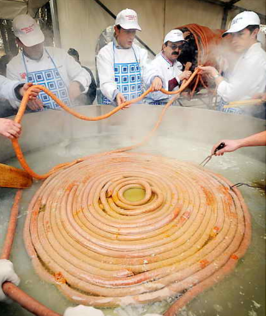 Рекорды Гиннеса — всегда интересны, особенно когда речь идет о не совсем обычных и привычных событиях и рекордах: 14 февраля 2009 года команда поваров из города Винковси, на востоке Хорватии, приготовили самую длинную колбасу в мире, длиной 530 метров. 11-летний мальчик на свой собственный День Рождения позволил разместить на своем лице 43 улитки — мировой рекорд. На вопрос как это ему удалось, Фин Кехелер ответил, что закрыл глаза и втянул губы, чтобы улитки не попали в рот. Группа из 116 человек смело выстояли прохладную погоду в Лондоне, будучи в одном белье, и так установили новый рекорд Гиннеса по количеству собравшихся в одном нижнем белье. Представитель Книги рекордов Гиннеса, Стэйси Кьюзак (на фото) пробует самый дорогой десерт в мире, стоимостью $25 000, который получил название «Frrrrozen Haute Chocolate» (Застывший Шоколад От кутюр). При приготовлении этого необычного десерта кроме шоколада используется съедобное золото в 23 карата, и он подается в пиале, украшенной 1-каратн