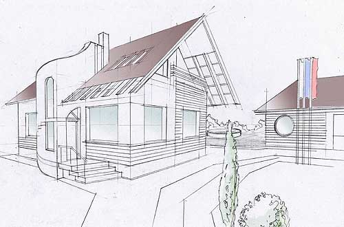 Мы начали заниматься дизайн проектом зимой. Когда были на стадии проработки проекта у нас уже были габариты дома. Для того чтобы построить дом на насыпном грунте ,я обратился к проектировщику(!).