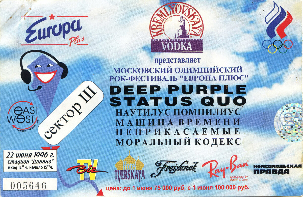 "Европа Плюс" 23 июня 1996 года. Концерт Deep Purple в Москве. О-да!!! Это было что-то с чем-то. Билеты купить было непросто, так как цена была немалая. А по нынешнему времени огромная. Смотрите сами. Но всё же, люди покупали и перекупали заветный корешок для прохода на стадион "Динамо". Я знаю, что говорю. Сам был там и не жалею потраченного времени стояния за билетом. Есть , что вспомнить. Ах, как молоды мы были! Всё было пофиг и по плечу одновременно. Deep Purple впервые в России стал хедлайнером на московском стадионе "Динамо" во время музыкального фестиваля "Европа Плюс" 23 июня 1996 года. Концерт транслировался в прямом эфире, как по телевидению, так и по радиостанции "Европа Плюс". Если желаете вспомнить как это было , то на моём канале есть запись этого. не побоюсь сказать, грандиозного мероприятия. Приятного просмотра! Не забываем оставлять свои комментарии.
