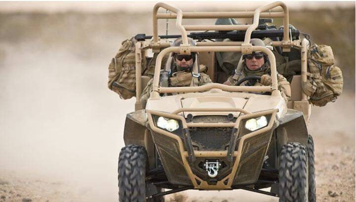 Использование мотовездеходов, или ATV, или «квадриков», для нужд вооруженных сил – уже давно не новость. А вот, что касается родных братьев ATV, аналогичных машин с поперечным расположением мест экипажа (side-by-side), или UTV, об этом известно меньше. Известный производитель такой техники фирма Polaris, производит целую серию таких машин под общим индексом RAZR (читается как razor – лезвие). В него входя как двухместные, так и четырех местные машины, а также своеобразные пикапы с грузовой площадкой. Базовой моделью для армейских нужд является Polaris MRAZR ALPHA 2 и 4 (соответственно, в двух и четырех местном исполнении). Особенностью данных машин является развитый каркас безопасности с возможностью крепления на нем разных образцов оружия. Каркас безопасности складывается для транспортировки вертолетом или самолетом. Выбор двигателя не совсем обычен для такой техники – тут стоит турбодизель Common Rail, агрегированный с 8-ми ступенчатой автоматической трансмиссией. Использование на MR