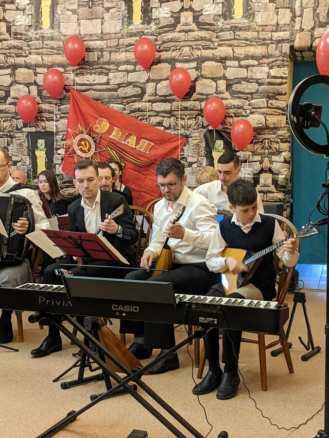 Когда я начал заниматься музыкой, я как-то сказал преподавателю что я занимаюсь для себя. Теперь я понимаю, что это не совсем так, я люблю играть для себя, но то что хорошо получается я люблю играть для кого-то еще. Первый раз на сцене, у меня тряслись руки ноги, и память подвела. С каждым моим выступлением становилось лучше и лучше. Я играю в самодеятельном оркестре, в нем не так страшно играть, потому что ожидания зрителей не завышены. На 9 мая мы подготовили праздничный концерт. Вот одно из ключевых произведений концерта. Я в центре унисона балалаек.