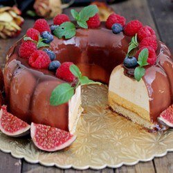 Муссовый торт с манго и шоколадом, который смогут приготовить все! ИНГРЕДИЕНТЫ Мусс сливочный: Яичные желтки - 3 шт. Сахар - 70 гр Молоко - 100 мл Маскарпоне - 250 гр Желатин - 10 гр Сливки - 100 мл Ванильный сахар - 15 гр Мусс с манго: Манго - 1 шт. Папайя - 0.5 шт. Сахар - 30 гр Сливки - 100 мл Желатин - 10 гр Глазурь: Сахар - 150 гр Желатин - 12 гр Вода - 75 мл Сгущенное молоко - 100 гр Инвертный сироп - 150 гр Темный шоколад - 150 гр Бисквит: Коржи бисквитные - 1 гр ПРИГОТОВЛЕНИЕ Описание приготовления: Делаем сливочный мусс. Разогреваем молоко, желатин заливаем водой холодной, у меня пластинки. Желтки взбиваем слегка с сахаром. Добавляем теплое молоко. Ставим назад на огонь и варим до загустения. Добавим ванильный сахар. Снимаем с огня и добавим отжатый желатин. Размешиваем все и добавляем маскарпоне.Все взбиваем,можно миксером. Даем остыть. Взбиваем сливки и добавим уже в остывшую массу. У меня такая вот форма была. Заливаем суфле не до конца в форму. Вы можете взять просто ко