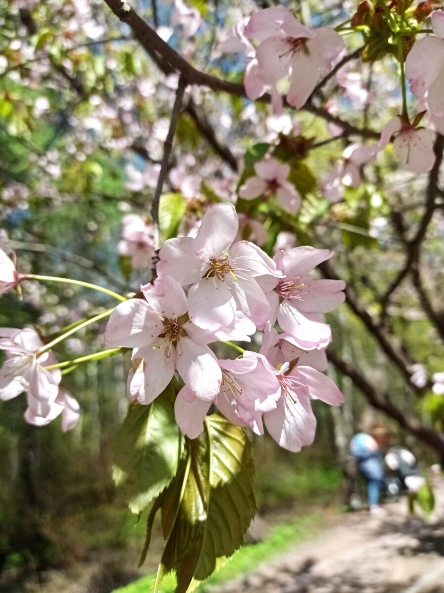 Сколько раз я смотрела на фотографии из Японии с розовыми облаками сакуры. Никакие розовые очки не нужны, лицо само по себе расслабляется, губы сами по себе улыбаются, сердце ждет любви... В Японии даже есть метеорологические сводки о цветении сакуры, чтобы никто не пропустил красоту! Меня, кстати, этот факт приятно удивил. То, что у нас осталось только словами в мультике - помните, если не увидим первых ландышей, то опоздаем на всю весну! - в Японии реальность... Я думала, сакура так и останется далëкой мечтой, пока не узнала в прошлом году, что в Москве есть своя, настоящая роща сакуры! Деревья были подарены Бирюлевскому дендропарку японским бизнесменом более 10 лет назад. О своем открытии я писала тут. Прошлой осенью я пообещала себе приехать в эту рощу и полюбоваться деревьями. К сожалению, сводок цветения сакуры в Москве пока нет, поэтому прикинули нужное время по отзывам прошлых лет, погоде и силам добраться в Бирюлево) И угадали! Рощу видно издалека, деликатные отсветы