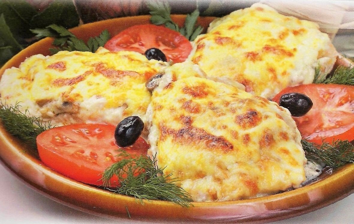 Всем привет на канале меня зовут Александр, и я вам сегодня хочу предложить просто бесподобный рецепт. Я его очень люблю. Это куриная грудка под овощной шубой с сыром. Этот рецепт готовится очень просто и на вкус получается. Что же мне понадобится из ингредиентов для этого рецепта? Мне понадобится конечно же в первую очередь куриная грудка, свежий болгарский перец, свежие помидоры, репчатый лук, консервированная кукуруза, сыр, который вы любите, немного майонеза, подсолнечное масло, соль, черный перец. Итак начнем. Куриную грудку нужно разрезать на порционные кусочки, после этого отбить молотком, посолить и поперчить. куриную грудку буду отбивать с двух сторон. Солить и перчить нужно так же с двух сторон. Мясо нужно обязательно готовить на луковой подушке. Лук нужно нарезать тонко, полукольцами. Противень нужно смазать подсолнечным маслом. Теперь выкладываю сверху на подсолнечное масло лук. Почему я рекомендую мясо готовить обязательно на луковой подушке, потому что мясо у вас получитс