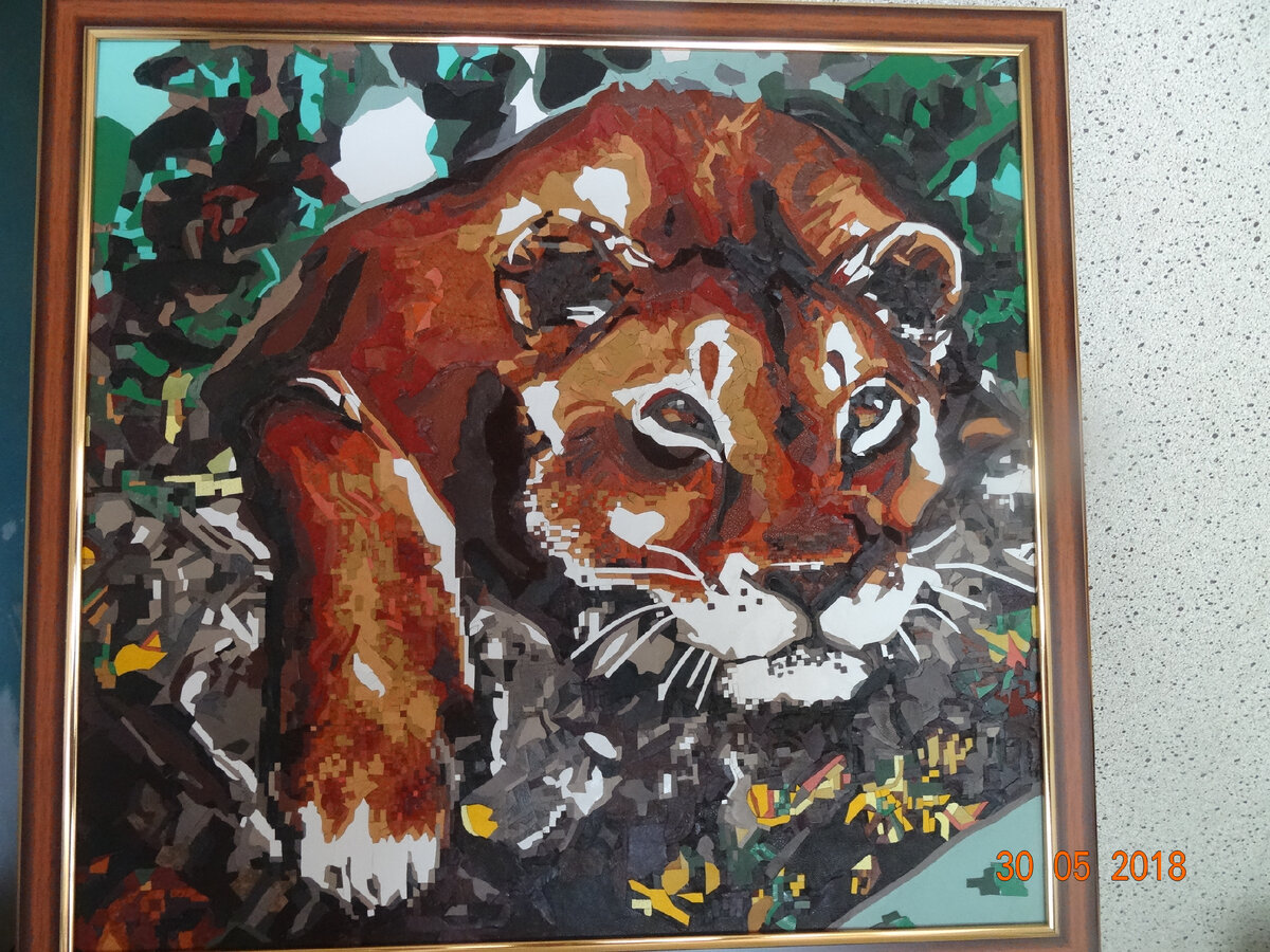 Эта работа выполнена в технике мозаики из кожи. Но поговорим сегодня не только о ней, а о создании картин из кожи вообще, с применением различных техник.