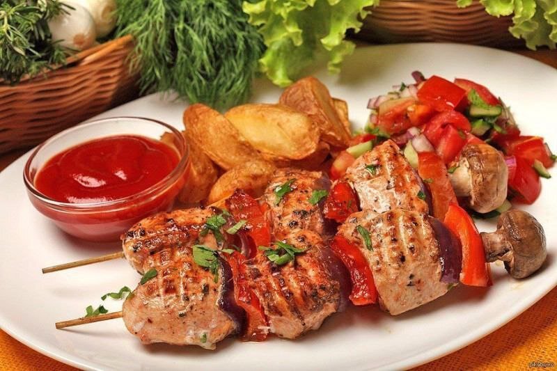 МАРИНАДЫ ДЛЯ ШАШЛЫКА: ТОП 5 РЕЦЕПТОВ. 1. Пряный маринад для баранины Ингредиенты на 500 г мяса: ●1 луковица, ●2-3 дольки чеснока, ●30 мл лимонного сока, ●перец красный молотый, ●соль по вкусу. Приготовление: Лук и чеснок мелко порубить и смешать с солью и перцем. Засыпать получившейся смесью кусочки мяса, перемешать и оставить в прохладном месте на 4−6 часов. 2. Пивной маринад для свинины Ингредиенты на 500 г мяса: ●100 соевого соуса, ●75 г меда, ●100 мл пива, ●2 зубчика чеснока, ●1 стручок красного перца, ●1 веточка розмарина. Приготовление: Измельчить чеснок, смешать с остальными ингредиентами. Получившимся маринадом залить свинину и оставить в холодильнике на ночь. 3. Маринад для курицы Ингредиенты на 500 г мяса: ●сок половины лимона, ●3 ст.л. оливкового масла, ●1/2 ч.л. чесночного порошка, ●сухие итальянские травы, ●соль и молотый перец по вкусу. Приготовление: Куриное филе порезать кусочками, добавить специи, лимонный сок и оливковое масло, хорошо пере