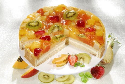 📍Торт фруктовый Ингредиенты: - печенье любое 400 — 500 г, - банан 2 шт., - киви 2 шт., - апельсин 1 шт., - желатин, - ванилин, - песок сахарный 250 г, - сметаны 800 грамм. Приготовление: 1. В чашечке на 40 минут замачивают желатин. 2. В это время взбивают сметану, ванилин и сахар. 3. Фрукты нарезают маленькими кусочками. 4. Дно глубокой формы, можно глубокой салатницы, выстлать пищевой пленкой, чтобы краями пленки можно было накрыть торт. 5. Желатин смешивают со сметаной. 6. На дно формы выкладывают киви, по бокам раскладывают печенье. 7. Затем наливают немного сметаны, далее фрукты, печенье, ломаное на мелкие кусочки. Так продолжают выкладывать слоями. Для последнего верхнего слоя должно быть поломанное печенье. Это будет низ торта, поэтому он должен быть ровным. 8. Торт накрывают пленкой и ставят на два часа в холодильник. 9. Затем верхнюю пленку раскрывают и переворачивают торт на тарелку. Пленку снимают. При желании можно сверху торт посыпать шоколадом. Приятного аппетита!