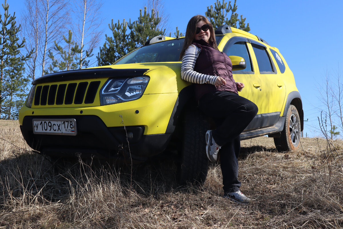 Изначально я крайне негативно относился покраске моего авто в Раптор. Ведь это же нужно матовать ЛКП! Поэтому Дустик был выкрашен в желтый пластидип, а обвесы в серый Раптор. Раптор на обвесах себя показал с лучшей стороны-несколько машин, которые поворачивали со второго ряда, царапались об меня, а у меня, тьфу-тьфу-тьфу, всё хорошо. Плюс пластидип достаточно быстро выцвел. В Санкт-Петербурге есть ещё один желтый Дастер. Покрашен он в Раптор был года 2-3 назад. Он не выцвел практически (вижу его иногда в окно!). Но и это не было последней каплей принятия решения о покраске в Раптор всего кузова! Один из нашей Дастер банды перекрасил свой авто в Раптор. Покрасил за 30 тысяч, меня удовлетворило соотношение цена/качество. Как оказалось, цена состоит из работ (15 тысяч) и материалов (15 тысяч). Такая маленькая цена материалов достигается использованием китайского Раптора. В целом, он то же прочный. Но китайцы могут в разных партиях немного разный оттенок цвета делать. Отправился в гаражи