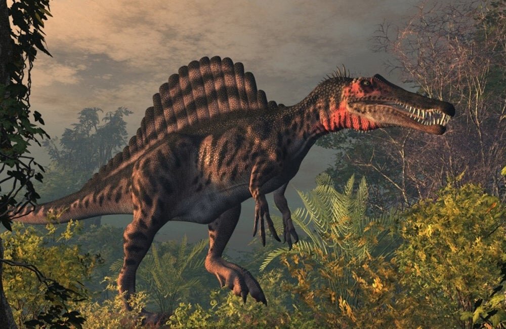 5. Спинозавр Название «спинозавр» с латыни дословно переводится как «шипастый ящер». Представления о внешности доисторического чудовища несколько раз менялись из-за недостатка материалов. На сегодняшний день считается, что животное передвигалось на 2 конечностях, скорее всего, вело водный образ жизни и имело трапецевидный парус на спине. Это крупный вид динозавров, представители в длину достигали 16 метров и имели массу 7-10 тонн. Специфический парус является особенностью строения позвоночника – он был образован огромными отростками спинных и хвостовых позвонков. Челюсти спинозавра узкие и длинные, с большими острыми зубами. Немаловажное значение в охоте на добычу имели и цепкие когти. Строение челюсти этого монстра весьма специфично, поэтому учёные предполагают, что охотился он только на тех особей, которых мог проглотить целиком, в том числе и водных. 4. Гиганотозавр Гиганотозарв описан по скелету, найденному в 1995 году на территории современной Аргентины. Длина тела – 12-13 метров,