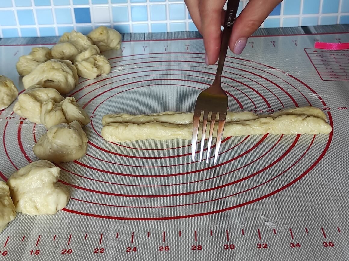 Попробуйте приготовить такое бездрожжевое тесто и скрутить при помощи вилки эти печеньки.