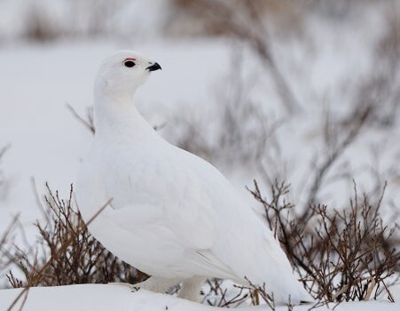 Зимой эта птица расселяется на болотах в ивняковых зарослях, сбиваясь в стаи. Белая куропатка не любит летать, а предпочитает бегать по густой траве. Белые куропатки в конце февраля разбиваются на пары и переселяются в моховые болота