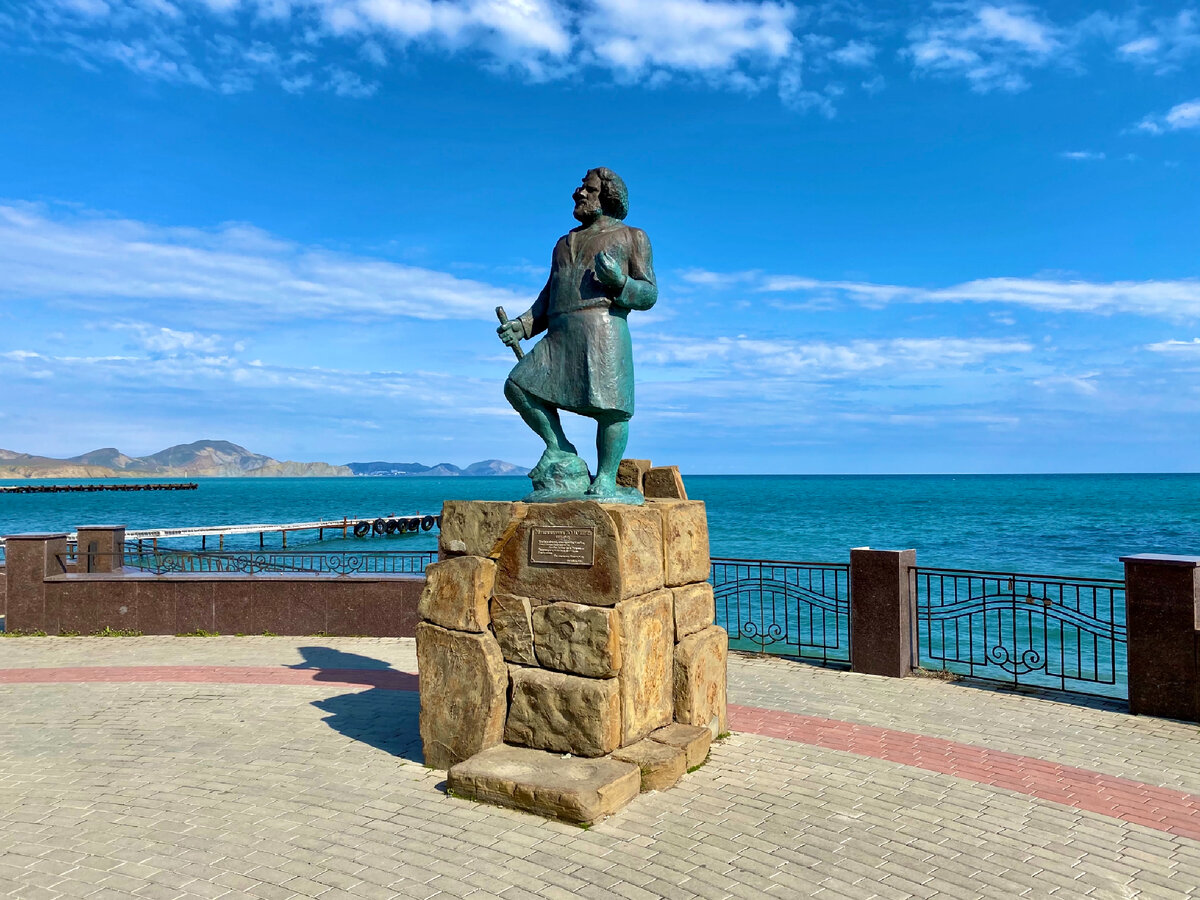Коктебель был местом, куда мы планировали поехать, когда впервые собирались в Крым. Я, кстати, не помню, с чем было связано это решение, но в итоге мы выбрали Алушту, которая полюбилась нам с первого раза и теперь останавливаемся либо там, либо в Ялте, часто в Севастополе. Коктебель же всегда объезжали стороной, с того раза интерес к нему почему-то не просыпался, но все изменилось в этом году. Попросили побывать там наши читатели и подписчики, поэтому мы решили продлить свою поездку, которая изначально должна была завершиться в Ялте, и отправились изучать восточную часть Крымского полуострова. К поездке в каждый город я обычно тщательно готовлюсь, но посмотрев список мест в Коктебеле, поняла, что эту поездку нужно всё-таки сделать более расслабленной и не нагружать ее историческими справками и прочим. Свой день мы начали с места под названием Звездопад воспоминаний (о нем расскажу отдельно), а после спустились к воротам в город и попросили, чтобы такси остановилось именно там. В голо