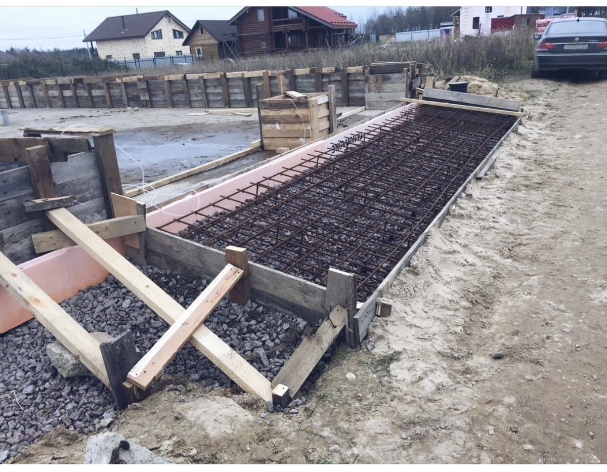 Электричество подключено, выпуски арматуры сделаны, завязан армокаркас бетонного основания стен. Забыл рассказать о нюансах вязки арматуры.