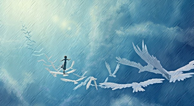 Шли годы, и вот однажды, в конце сентября, когда воздух наполнил запах дыма от горящей травы, над облачным миром закружили белые птицы. Эри не сводила с них глаз, ведь может, пришли не за ней. Они долго носились в голубом небе, но, когда начало темнеть, собрались вокруг Эри.