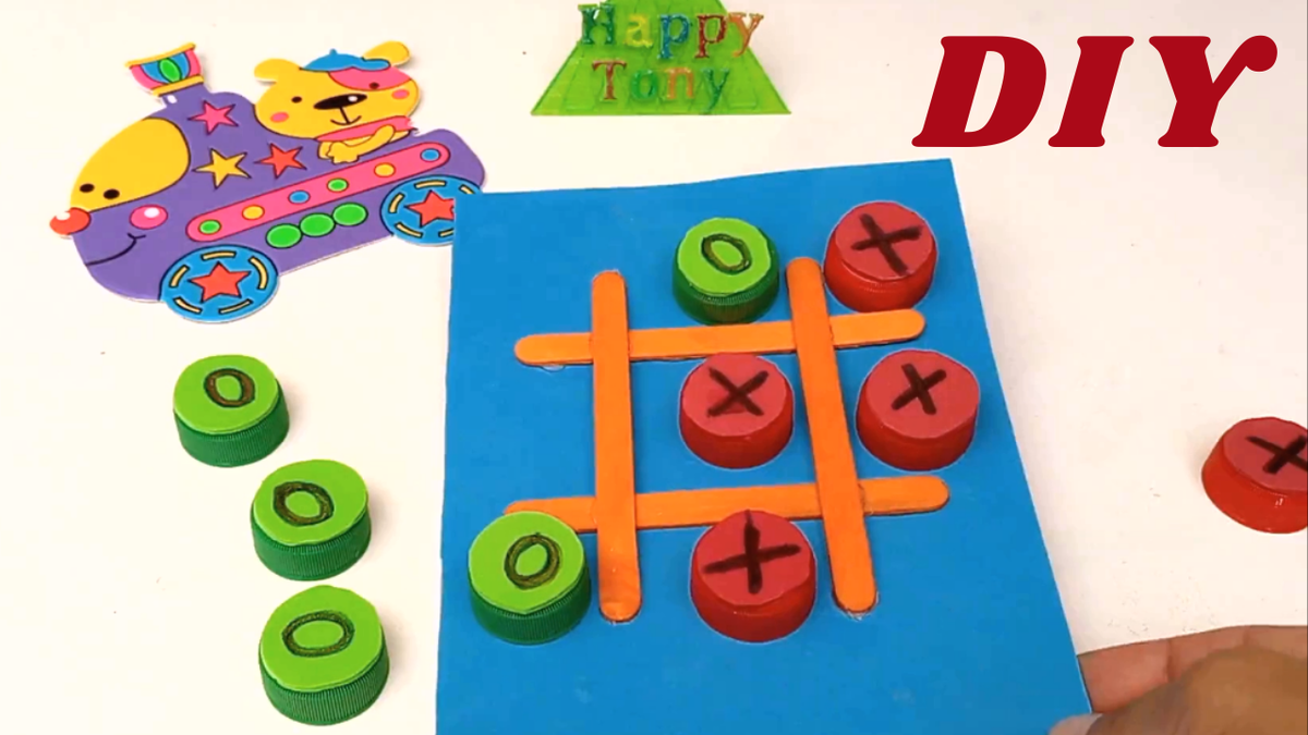 Привет всем, вы на канале Happy Tony, сегодня сделаем игру крестики нолики своими руками. Для работы нам понадобятся: пластиковые крышки, деревянные палочки, картон, самоклеющийся фоамиран. Приятного вам просмотра, не забудьте подписаться на канал, нажимайте на колокольчик, чтобы не пропустить новые видео.