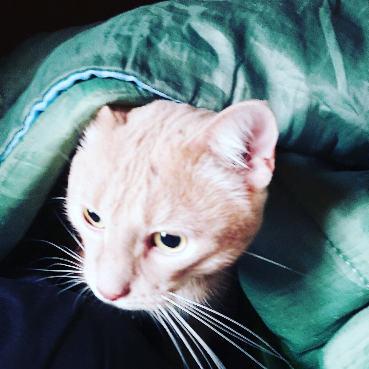 После того, как маленький бедный котик уснул в машине, мы боялись даже разговаривать. Ну как проснется, и опять голосить начнет? Не буди лихо, пока оно тихо. В бытовке кот долго отказывался покидать переноску. Мы занимались своими делами и особо не настаивали. Но через час Сашка занервничал. -Скизи, ну иди хоть бы водички попей! - Предложил он. Кот вылез через полчаса уговоров. Быстренько описал круг почета и спрятался в одеялах. Дождь лил как из ведра, и мы потихонечку тоже начали укладываться. Это же целая эпопея. Холодно, спим на матрасе в спальнике и еще одеяла сверху)) Пока все перетрясла, пока улеглись. Кот, конечно, заныкался в спальнике в самых ногах. -Какой кот у нас трусишка.- Сетовал Сашка. -Ага.- Соглашалась я. А потом наступила ночь... Кот заворочался в ногах и словно медведь по бурелому, не разбирая дороги, начал ломится к выходу. Наступил мне на горло, выбрался, издал вопль победителя и грозно сиганул с матраса в темноту. Сначала он пересчитал резиновые сапоги. Навер