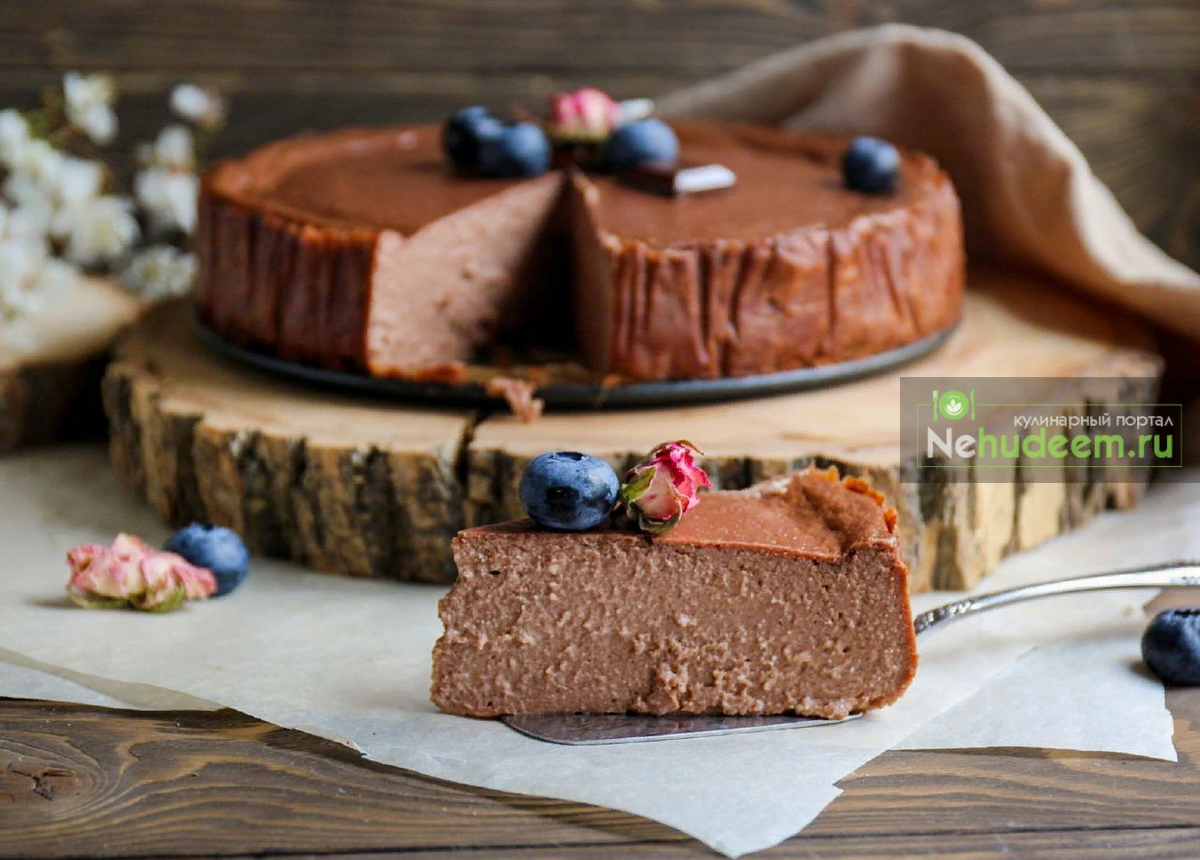 Чтобы запеканка стала более плотной и насыщенной, лучше оставить её на ночь в холодильнике. Запеканка без мукиготова. Перед подачей посыпать через сито какао и украсить ягодами. Приятного аппетита!