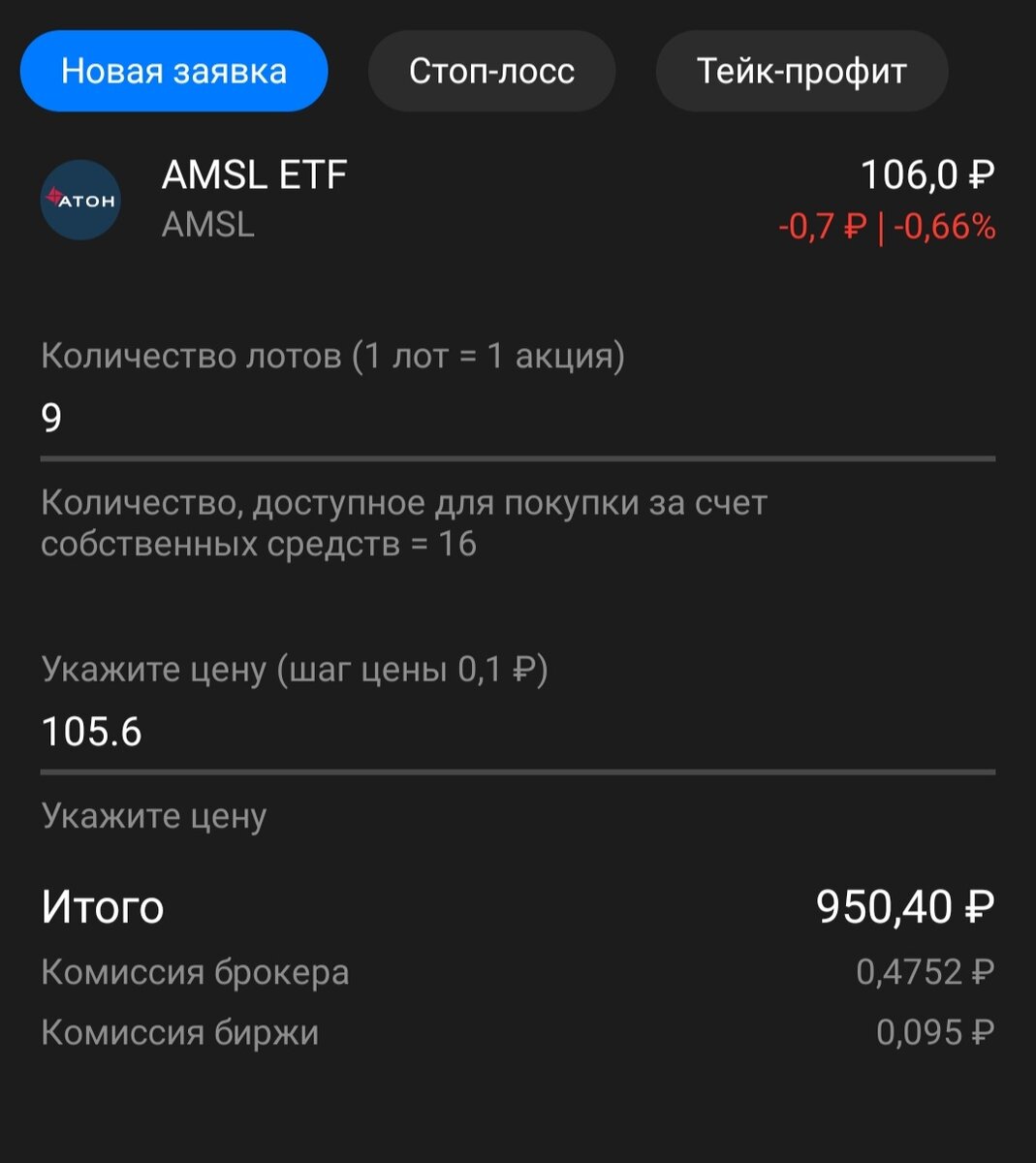 Уже 19 недель я продолжаю свой эксперимент по созданию с нуля портфеля, состоящего только из ETF, о причинах создания которого я писала в статье В новом году начинаю финансовый эксперимент: буду еженедельно инвестировать 1000 рублей в ETF . Все результаты я буду публиковать здесь на этом канале, поэтому подписывайтесь, чтобы следить за новостями. Как и планировала, каждую неделю я пополняю брокерский счёт на 1000 рублей. На эти деньги я покупаю различные ETF. Моя цель-обогнать реальную инфляцию в России (около 15%). Поэтому я хочу получить доходность в конце 2021 года не менее 15%. Критериями покупки являются низкая комиссия не более 1-2 % и стоимостью пая до 1000 рублей. Фонд, которого ещё нет в моем портфеле и который соответствует критериям покупки - AMSL. Утром я выставила заявку, которая сработала только спустя 5 часов. Волатильность в этом инструменте пока невысокая, объёмы торгов маленькие. Цена покупки составила 105.6 рублей. В настоящее время стоимость моего портфеля сос