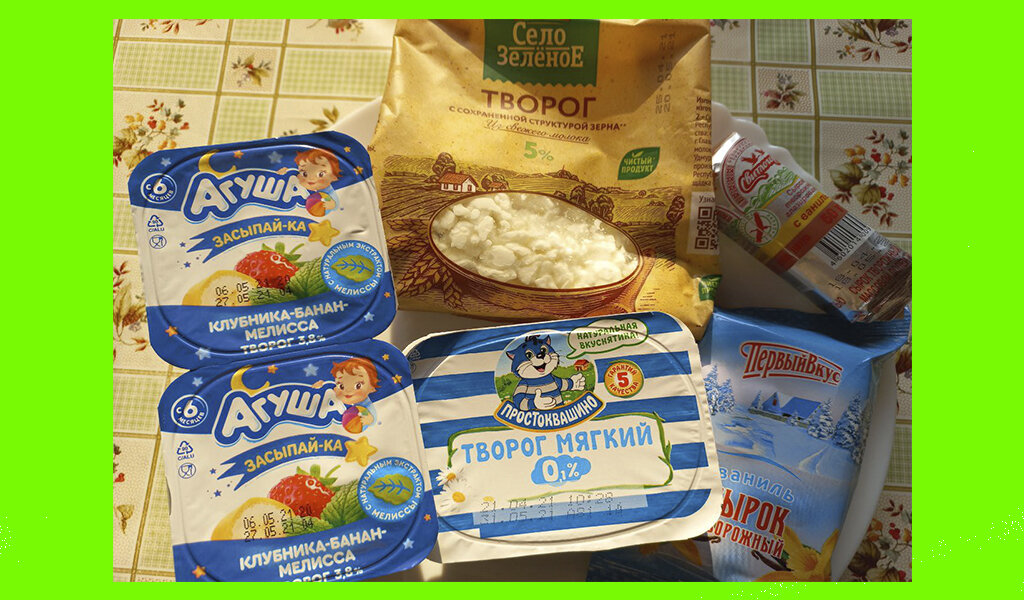 Купила я вчера несколько видов творога, сравнила цену Творог полезен детям, да и взрослым. Это кальций, белок, молочнокислые бактерии, витамины. И, оказывается, творог усваивать организму легче, чем кефир и йогурт. И мои дети любят творог. Мой старший сын любит сладости, поэтому для него я покупаю сырок “Светлогорье” с мыслью, что лучше пусть есть сырок, чем просто конфеты. Младший сын и муж любят творожный сырок “Первый вкус”. Своим родителям я покупаю творог мягкий “Простоквашино”, потому что он не жирный и не сладкий и его даже можно ни с чем не смешивать - он уже готов к употреблению. Творог “Село зеленое” любят в семье все, если смешать его со сметаной и малиной из морозилки. А “Агушу” я купила, для сравнения со всем этим купленным творогом. Я хотела рассмотреть сколько в каждом из них белка, жиров и углеводов, а также сравнить цены за 1 кг продукта. Количество белка оказалось наибольшим в первом вкусе и селе зеленом (я думала, что в селе зеленом) Самый калорийный - свитлогорье,