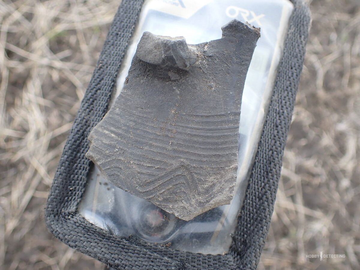 Доброго вам настроения уважаемые читатели нашего блога. В этом году мне снова и опять пришлось пересмотреть свои умозаключения относительно того, где в нашей местности старались селиться люди в 17-м веке. А, дело было так. Встретился я как-то с камрадом у магазина, камрад тот раньше жил с женой в соседнем селе. Ну, как в селе, там жилых домов пять штук осталось. Вот и они после развода разъехались, камрад к нам в посёлок переехал, а жена к родителям в город. Так вот, слово за слово, разговорились о копе и камрад мне рассказывает, что на поле за своим огородом, они с женой нашли место, где крестов и перстней накопали с полсотни штук. Я спросил про керамику, камрад мне и отвечает, что битых черепков там хоть горшки заново клей, и гвоздей кованных, и главное, чешуя вся Ивана Грозного. «А, это интересно» подумал я и, при первой же возможности, выехал на место. Знаете, что я там увидел? Поле после схода снега подсохло и только то место, где стояла когда-то поселуха, было не просто жижей гр