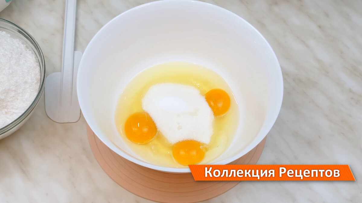 Сегодня испечем быстрое, хрустящее и очень ароматное кокосовое печенье! Рецепт не новый и хорошо известный, а кто еще не пробовал это лакомство, но очень любит кокосы - обязательно приготовьте! Список ингредиентов: Выход: 24 шт В миску вбиваем 3 яйца, всыпаем 120 г сахара, щепотку соли и при желании добавляем ванилин или ванильный экстракт. Взбиваем миксером или хорошо перемешиваем венчиком до получения пышной массы и практически полного растворения сахара. У меня на это ушло 3 минуты. Затем в эту массу добавляем кокосовую стружку и перемешиваем. По рецепту идет 250 г, но в зависимости от размера яиц, величины стружки и ее влажности, вам может понадобиться чуть больше или чуть меньше, поэтому всю сразу не добавляйте, чтобы не получилось так, что масса слишком сухая и рассыпчатая и не поддается формовке. Можно приготовить более жидкую массу с меньшим количеством кокоса и выложить ее на противень ложкой, а можно добиться плотной консистенции и сформовать печенье вручную. В результате у