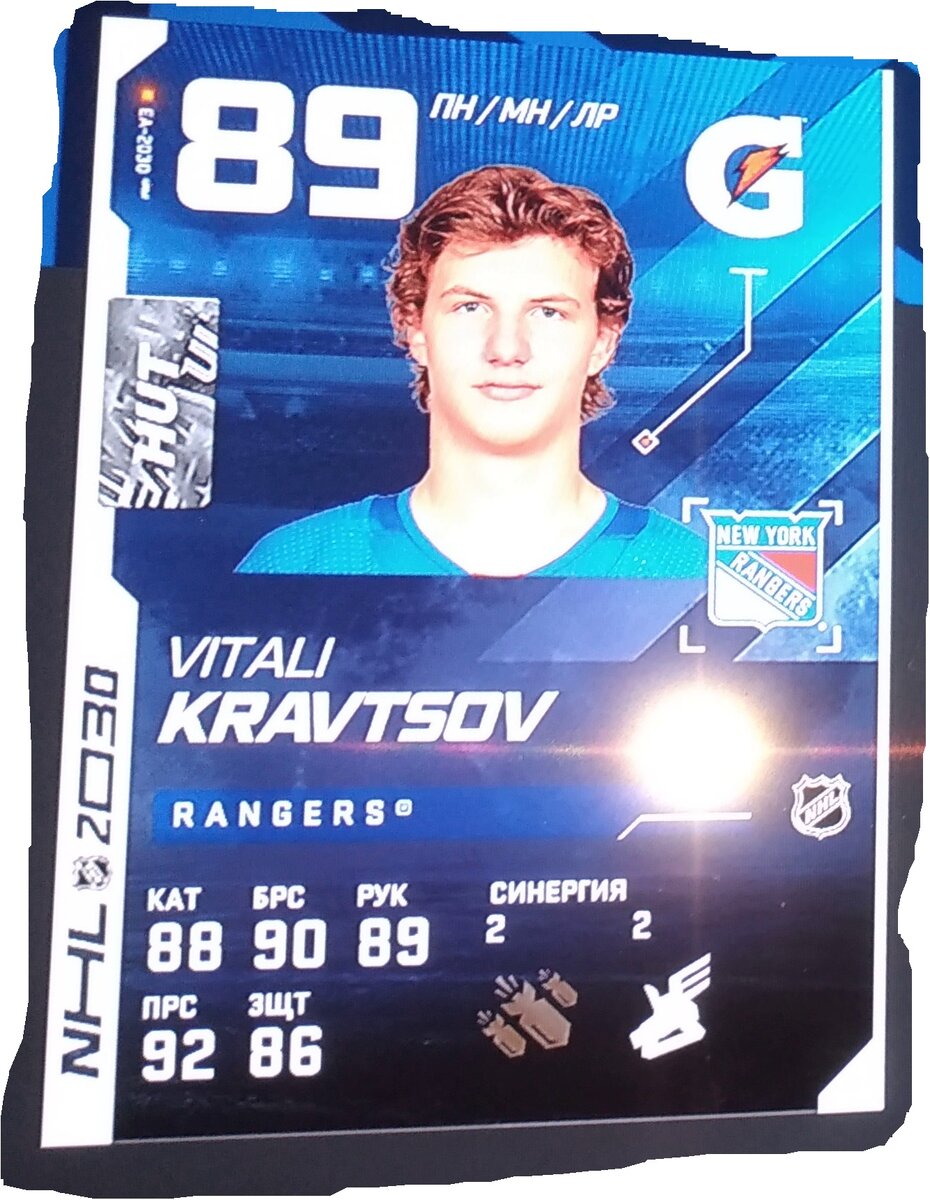 Заголовок звучит немного бредово, но я не знаю, как иначе выразить свой шок от встречи с этим хоккейным гением. 89 OVR, шикарное катание и бросок, куда только смотрят коллекционеры HUT?! А всё просто: Виталий Кравцов ещё не стал таким классным, но ЕА думает, что он им станет в будущем. Это карточка из уникальной коллекции "NHL2030", и она просто бомбическая! Две активные синергии позволяют встроить этого форварда практически в любой состав. "Помощник" у меня и так уже был активен, а "шквал" активировался именно благодаря "гостю из будущего"! С тремя активными синергиями и OVR больше 90 моя команда готова "порвать" HUT! Ну, это я так думал тщеславно, на деле-то оно иначе вышло всё, не столь радужно, зато весело! Впрочем. об этом в одной из следующих статей. А ещё Кравцов - это именно тот игрок, которого я не могу отыскать для пополнения коллекции "сборная России". Правда, Кравцов "в форме сборной" отчего-то до себя "заматерелого" очень и очень сильно не дотягивает: Забавно, что нынешне