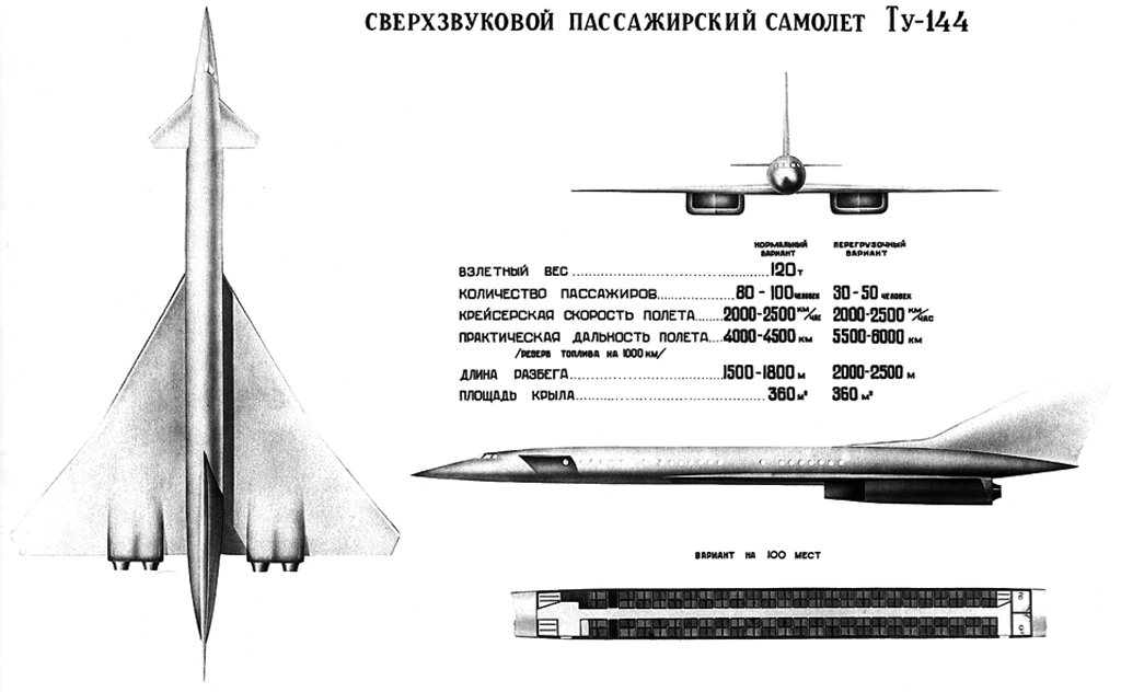 Один из первых вариантов Ту-144, как дальнейшее развитие проекта Ту-135П. Про проектным данным сверхзвуковой пассажирский самолет, взлетной массой 120 тонн, был расчитан на 80-100 человек. Ту-144 имел практическую дальность 4000-4500 км, крейсерскую скорость 2000-2500 км/ч, при этом был предусмотрен запас топлива на 1000 км. Начиная создавать Ту-144, С. М. Егер предложил вести проектирование Ту-144 на основе большого объема проведенных работ по самолету «135» и его гражданской модификации «135П», т.к. его характеристики соответствовали требованиям выдвинутым к новому сверхзвуковому пассажирскому самолету. В дальнейшем самолет был полностью переработан под новые более объективно выдвинутые требования. Напоследок задание 1963 года на создание самолета Ту-144: