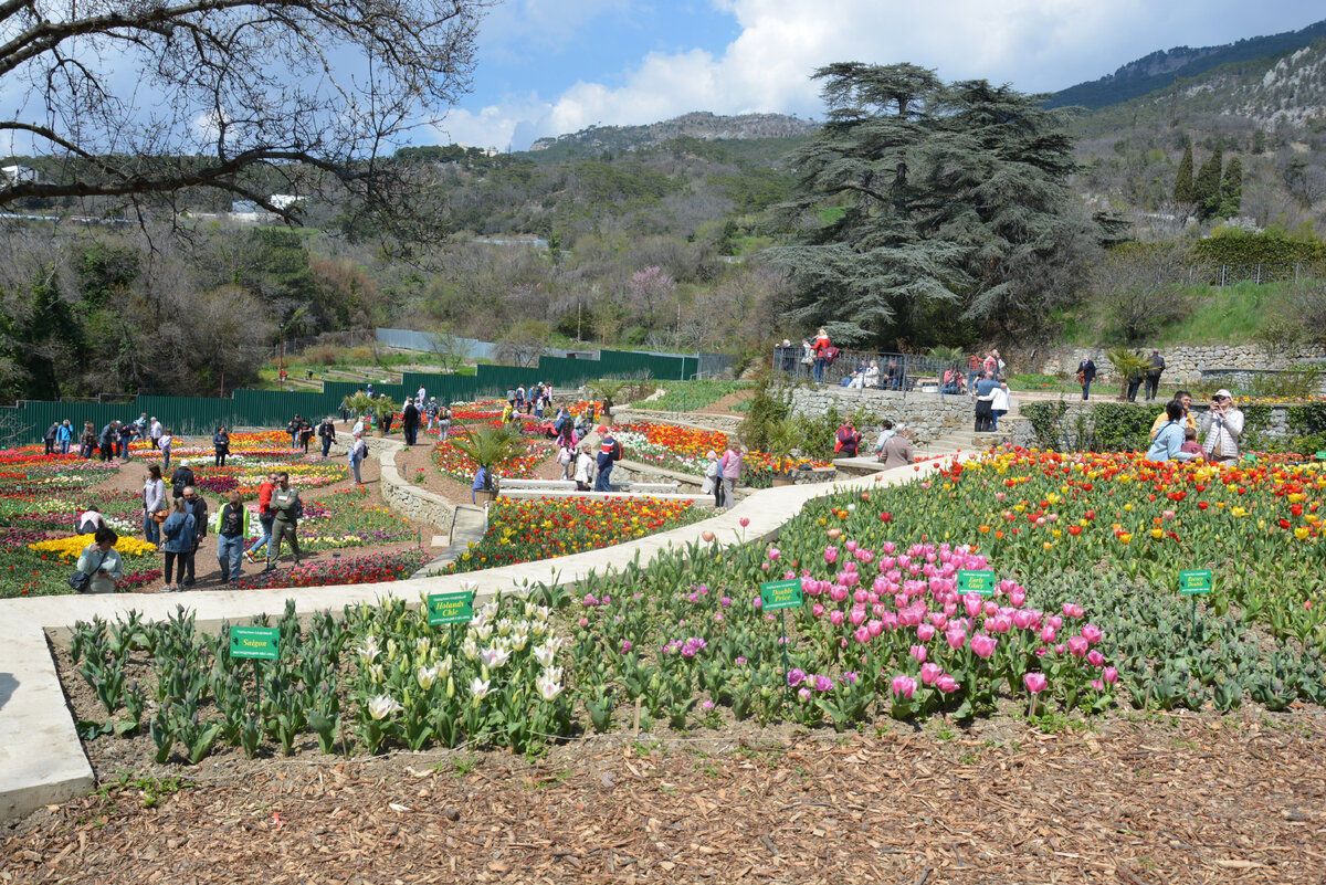 Давно мечтала попасть в Никитский ботанический сад, который находится в Крыму, в окрестностях Ялты. И вот, наконец-то, мечта сбылась. Моё посещение совпало с приятным мероприятием. Ежегодно, в середине апреля, здесь проводится праздник цветов, знаменитый Парад тюльпанов! Зрелище это, просто невероятной красоты! Такое количество тюльпанов одновременно, я не видела никогда! Показано было 200 разных сортов. Высажено около восьмидесяти тысяч луковиц. Невероятно! Полюбоваться цветочным шоу пришли и стар, и млад. Всем было интересно, любопытно, увлекательно. Лично я, три часа кружилась вокруг этих изумительных цветочков. Удивлялась, восхищалась, радовалась... Пыталась запечатлеть хоть малую часть этой прелести. Думаю, мне это удалось... Дорогие читатели, если вам понравилась статья, ставьте лайки, делитесь своими впечатлениями со мной. Подписывайтесь на канал, буду рада видеть вас снова и снова.