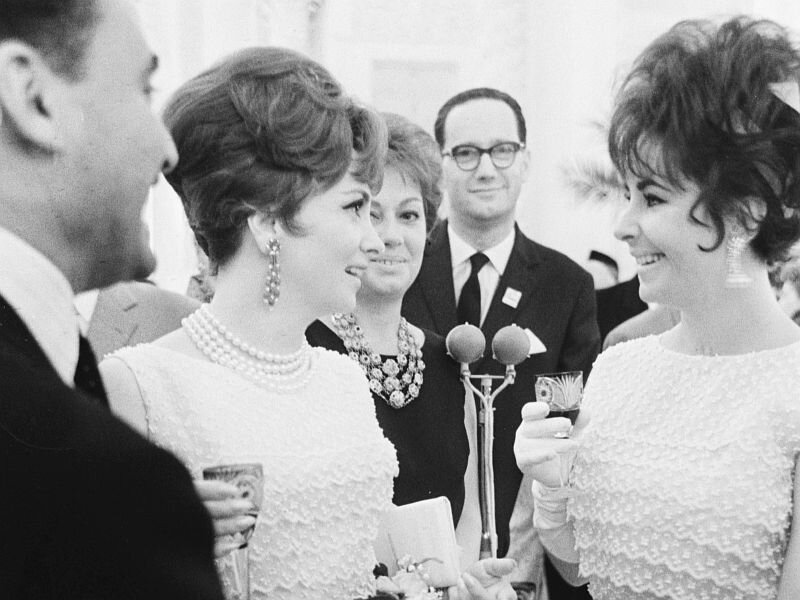 На второй Московский кинофестиваль в 1961 году были приглашены сразу две мировые звезды первой величины, Элизабет Тейлор и Джина Лоллобриджида. Обе были рады приехать – ради знакомства с Юрием Гагариным не в последнюю очередь. На приеме в Кремле по случаю фестиваля случился казус, который обошел всю мировую прессу – Тейлор и Лоллобриджида явились в совершенно одинаковых платьях. Только пояса были разного цвета, у Элизабет голубой, в цвет глаз, у Джины красный. Судя по реакции актрис, совпадение оказалось неприятным сюрпризом, хотя обе очень постарались сделать непринужденный вид и даже шутили, позируя рядом. Популярная версия, объясняющая случившееся, явно исходила от Тейлор и сработана была на скорую руку. Якобы, платье Элизабет задумывалось как уникальное и шилось на заказ в модном доме Кристиана Диора, а соперница Джина украла выкройки и заказала себе похожую модель. Но самый беглый взгляд на снимки вскрывает очевидное – у звездных дам совершенно идентичные по крою и ткани платья, в