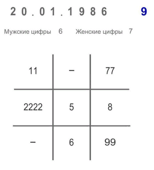 Друзья, сейчас во всех СМИ обсуждают экстренную госпитализацию популярной ведущей и певицы Ольги Бузовой. Многие просили разобрать матрицу звезды на наличие каких-либо предрасположенностей к болезням. А многие и вовсе не верят в болезнь певицы, объясняя это очередным хайпом. Вы просили, я сделала! Итак, дата рождения Ольги - 20 января 1986 год: Количество 2 говорит об огромной физической энергии, которой певица умело пользуется, что должно благоприятно сказываться на ее здоровье и энергетических потоках! Отсутствие 3 и 4 в матрице говорит о такой творческой легкомысленности, о том, что Ольга не живет по законам общества (как принято), а делает по-своему! Возможно, в этом и есть её секрет успеха? Наличие 5 говорит о чувственности певицы и умении сопереживать, принимать всё близко к сердцу! 6- это вполне себе адекватная самооценка, не завышенная, не предвзято к себе относится, гордыня, правда, немного присутствует. 77 и 8 говорят нам о наличии хорошей интуиции, везении)) 99- это