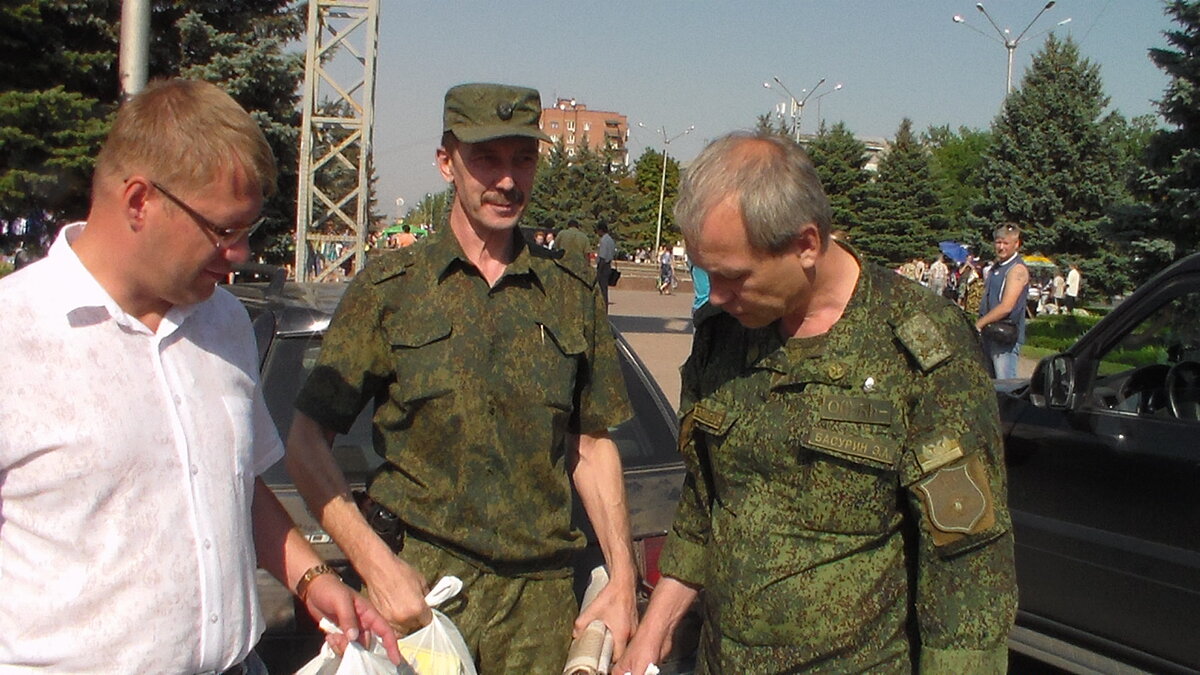 29 августа Горловка, как и все шахтерские города Донбасса, отмечала День Шахтера. В этот день перед горловчанами выступали творческие коллективы города, а местными властями проводилась региональная ярмарка. Приятной неожиданностью для горловчан, по сообщения местных СМИ, стал приезд заместителя командующего корпусом Министерства обороны Басурина Эдуарда Александровича. Приехал он не с пустыми руками – представителям театральных коллективов была роздана гуманитарная помощь в виде канцелярских наборов. Кроме того, такую же гуманитарную помощь раздали детям наиболее пострадавших районов Горловки. Не остались без внимания и ветераны Великой Отечественной войны. Для них были переданы продуктовые наборы от ветеранов Югры, собранных и привезенных Эдуардом Логиновым. Принимал гуманитарную помощь Горловский военный комиссариат в лице венкома Шалимова Сергея Александровича. «Хочу поздравить от Министерства обороны и от себя лично всех шахтеров», - сказал Басурин – «Это очень большой и светлый п